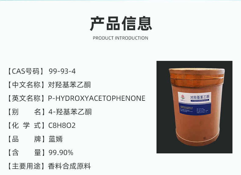 對羥基苯乙酮又名4-羥基苯乙酮,4-乙?;椒?,俗稱針樅酚。對羥基苯乙酮常溫下為白色針狀結(jié)晶,可燃,易溶于熱水,甲醇、乙醇、乙醚、丙酮、苯,難溶于石油醚。天然存在于菊科植物濱蒿的莖、葉,茵陳蒿、蘿藦科植物人參娃兒藤等植物的根中。本品用于制造利膽藥及其他有機(jī)合成的原料。動物實(shí)驗(yàn)表明,本品可增加大鼠膽汁的分泌,同時也能增加膽汁中固體物、膽酸、膽紅素的排出量,對四氯化碳引起的肝損傷也有同樣作用。