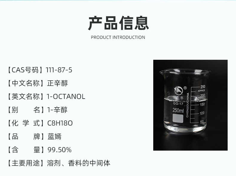 主要用于生產(chǎn)增塑劑、萃取劑、穩(wěn)定劑,用作溶劑和香料的中間體。在增塑劑領(lǐng)域,辛醇一般是指2-乙基乙醇,這是百萬噸級的大宗原料,在工業(yè)上遠(yuǎn)比正辛醇更有價值。辛醇本身也用作香料,調(diào)合玫瑰,百合等花香香精,作為皂用香料。主要用以配制椰子、菠蘿、桃子、巧克力和柑桔類香精。